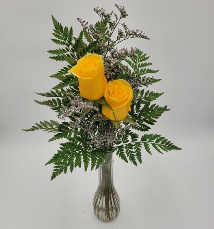 2 Rose In Bud Vase w/ Filler