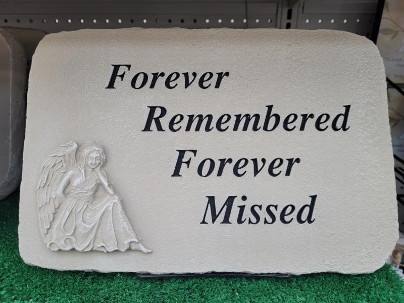 Medium sized 10"x15", cement memorial plaque includes small black stand