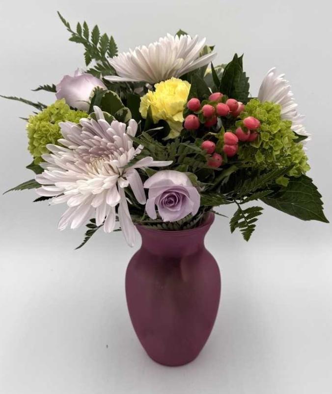 In arrangements of assorted flowers, the colors shown online will be used if at all possible, even if this means substituting other kinds of flowers of equal or greater value.