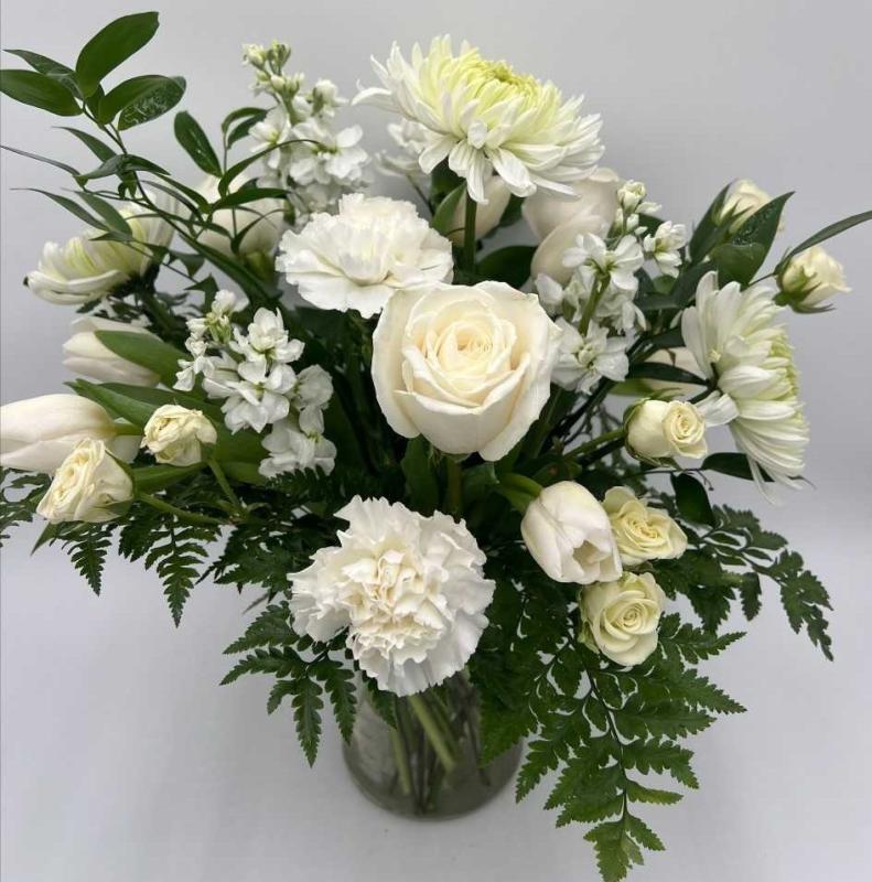 In arrangements of assorted flowers, the colors shown online will be used if at all possible, even if this means substituting other kinds of flowers of equal or greater value.