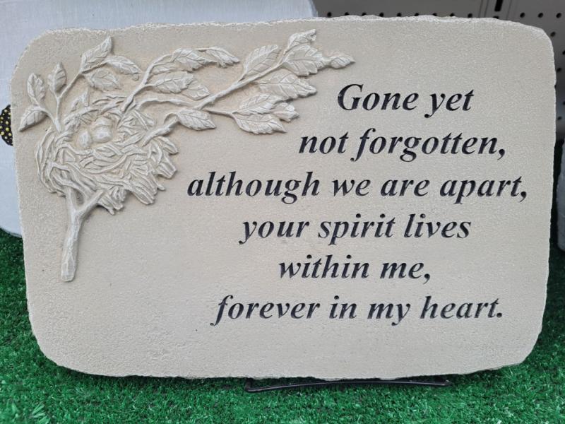 Medium sized 10"x15", cement memorial plaque includes small black stand