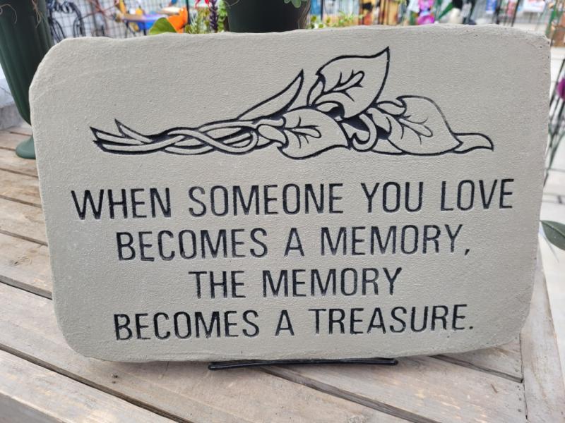 Medium sized 10"x15", cement memorial plaque includes small black stand