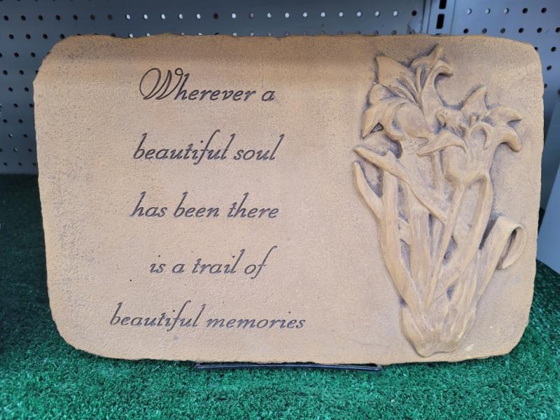 Medium sized 10"x15", cement memorial plaque includes small black stand