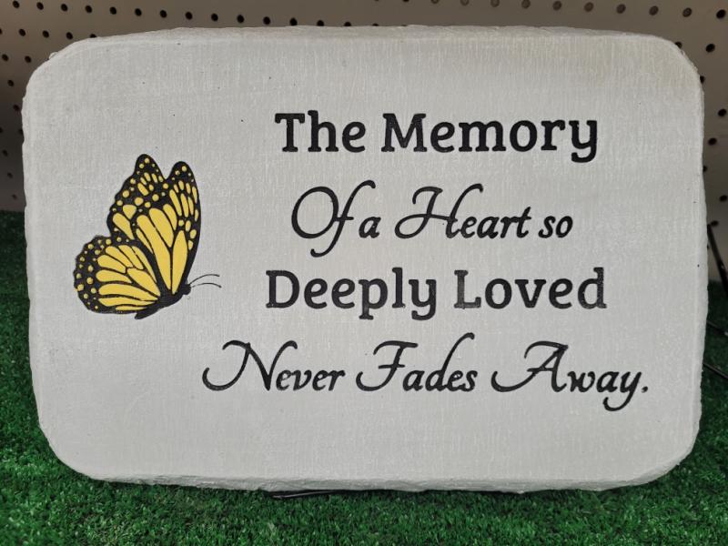 Medium sized 10"x15", cement engraved memorial plaque includes small black stand