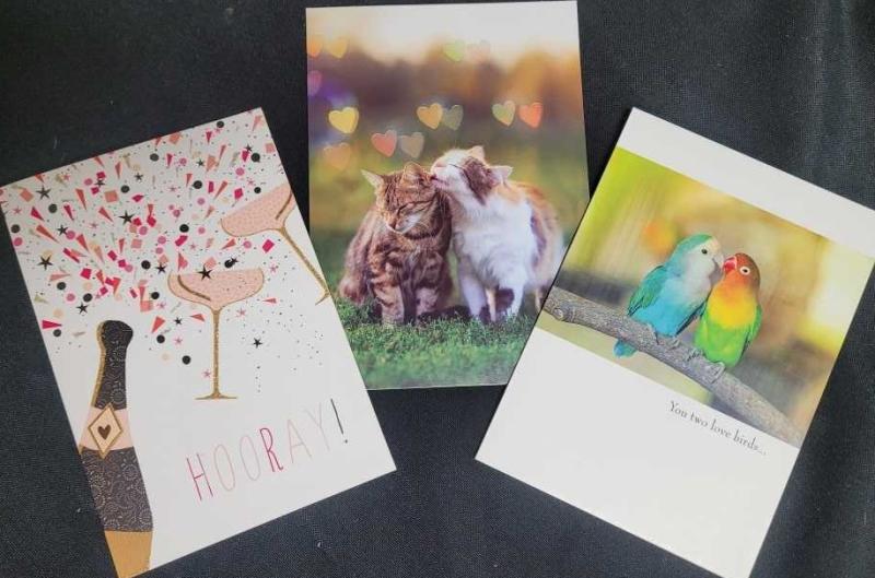 We offer greeting cards for anniversary, engagement, and love!